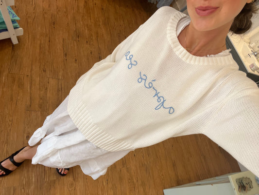 APRÈS SEA X ELLSWORTH & IVEY Whimsical Knit Sweater -White/Hydrangea