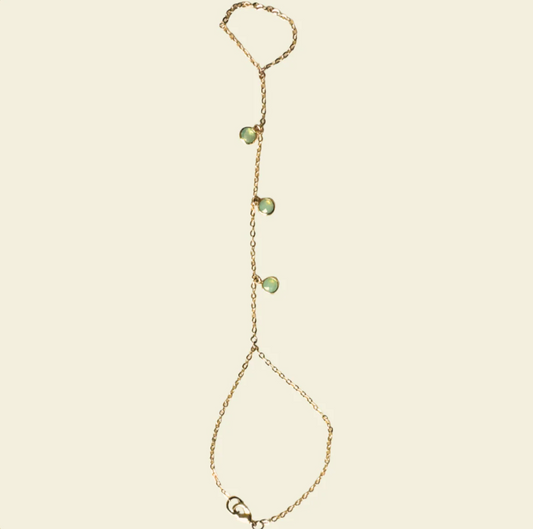 GREEN GLASS GOLD PLATED HANDCHAIN- HANDMADE IN CHARLESTON