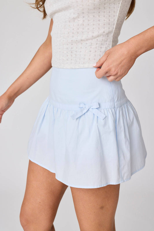 Riley Poplin Skirt w/ Bow Detail: Baby Blue