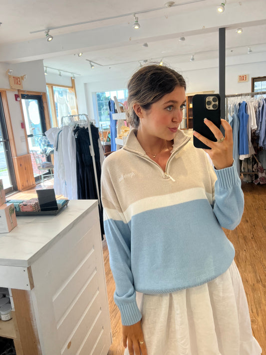 APRÈS SEA X ELLSWORTH & IVEY Quarter Zip Sweater -Hydrangea/White/Sand