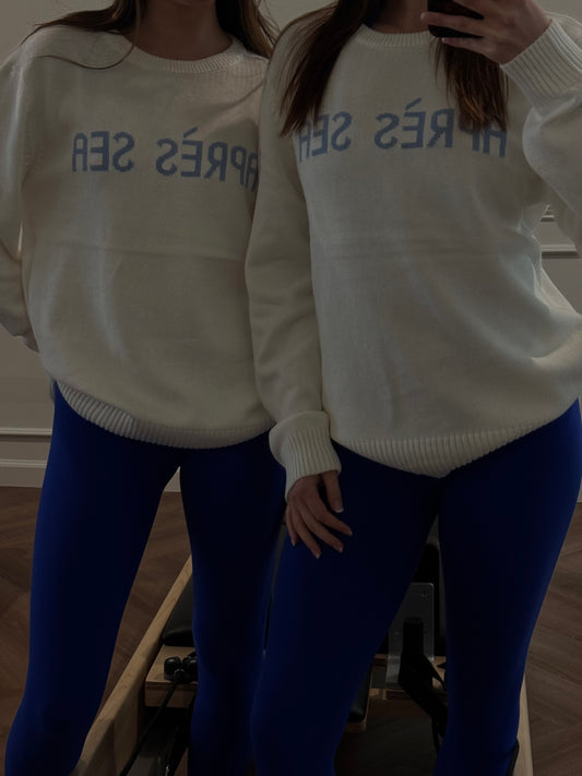 APRÈS SEA COTTON KNIT SWEATER -Hydrangea/White