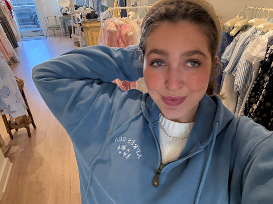 APRÈS SEA HYDRANGEA EMBROIDERED QUARTER-ZIP - WASHED UP BLUE
