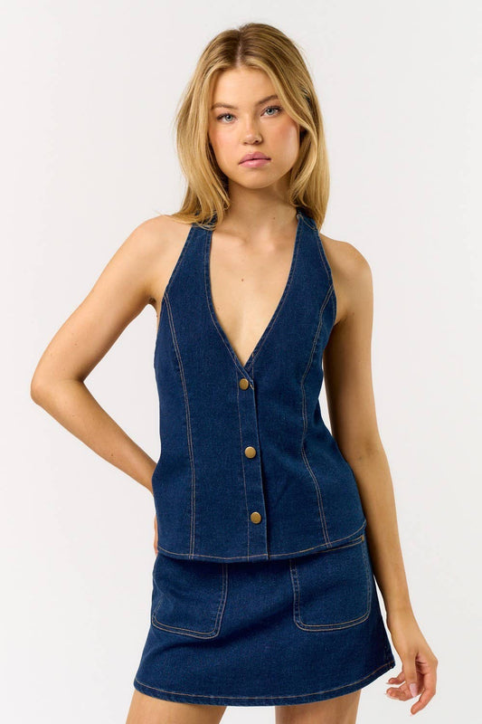 LINEN ASYMMETRICAL BUTTON DOWN VEST TOP: OFF WHITE