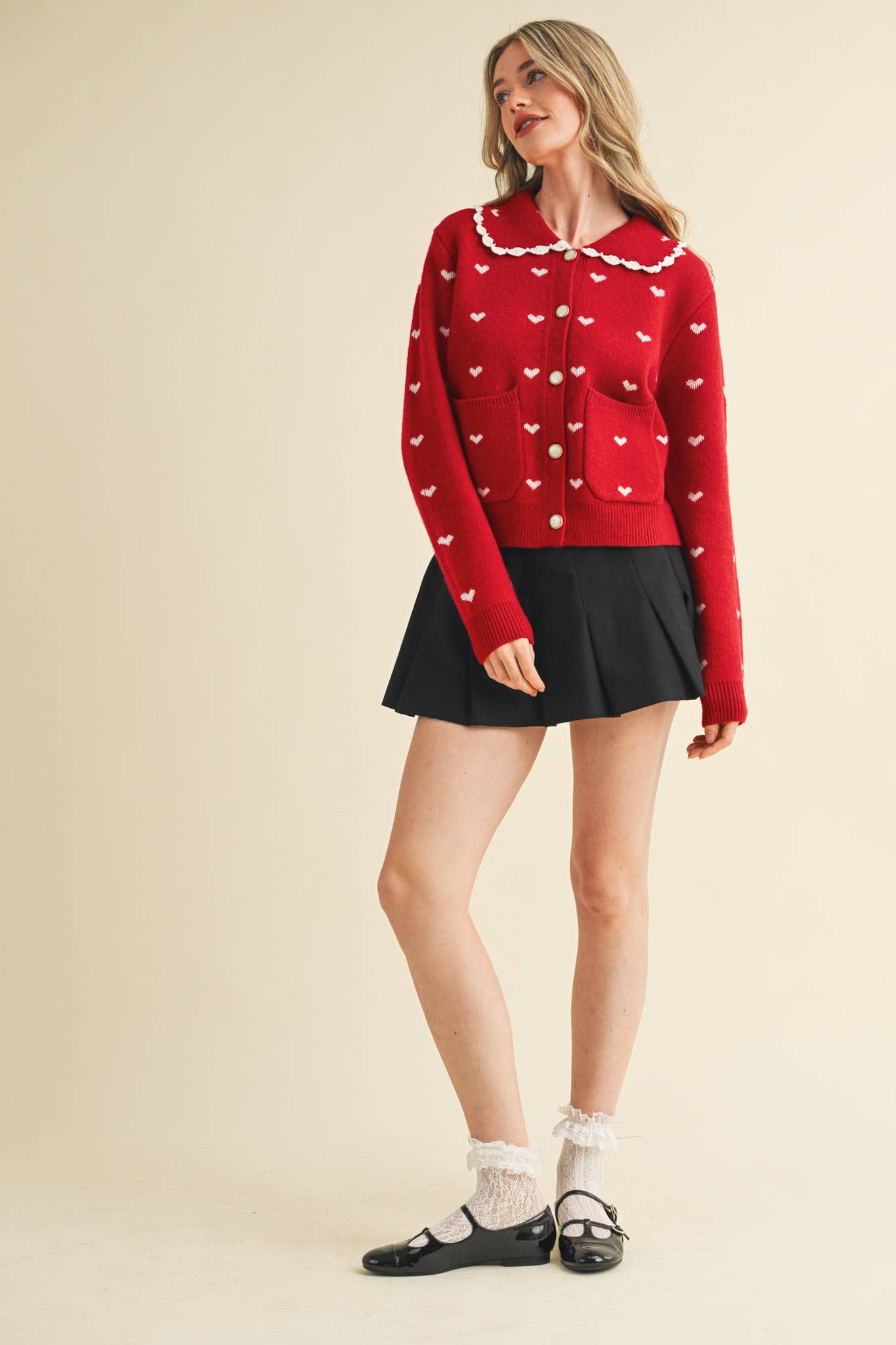 LOVER GIRL BLUE DOLL COLLAR HEART KNIT SWEATER CARDIGAN - DUSTY BLUE