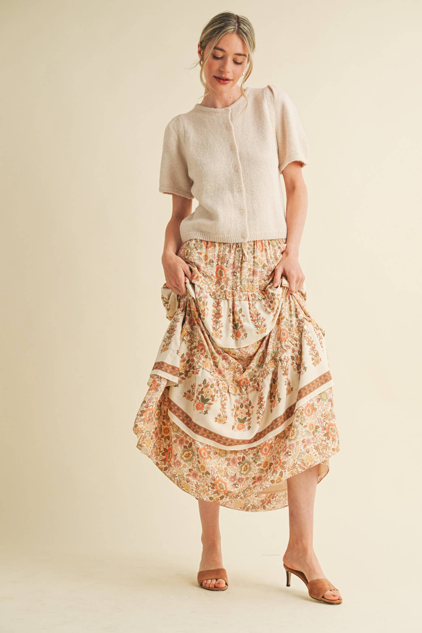 This short puff sleeve sweater cardigan was made to be layered with all your favorite ‘fits! Cozy sweater knit shapes this cute sweater that has short puff sleeves with gathered shoulders and a round neckline. Bodice features functional button down placket and ribbed knit accents the neckline, button placket, and hem.